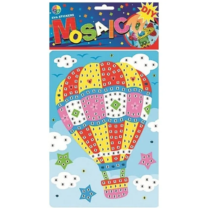 Díky tomuto balení si děti budou moci vytvořit svůj vlastní mozaikový obrázek. Procvičí si trpělivost a jemnou motoriku. Pěnové samolepky budou postupně odlepovat z blistru a podle čísel je nalepovat na předtištěný obrázek.